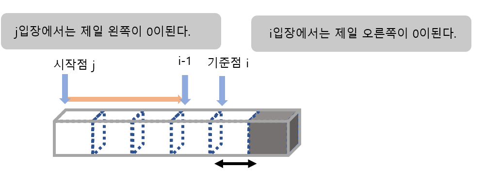 그러면 식은 아래와 같게 됩니다. 여기서 중요한 점은 i가 0인 이유는 i가 오른쪽 기준으로 카운트가 올라간다는 점입니다.