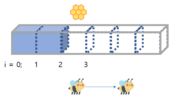 기준점 i에 대해서 본인의 좌표 값을 min = i라고 만든 뒤 다음 칸 j=i+1부터 비교해나가면서 본인보다 작다면 min의 값을 옮긴다. 그리고 옮긴 마지막지점에서 i의 값과 바꿉니다. 마치 꿀벌이 모든 값을 순차적으로 검색한 뒤 최고의 자리를 찾고 나서 벌집 위치를 해당 자리로 옮기는 것과 유사합니다.